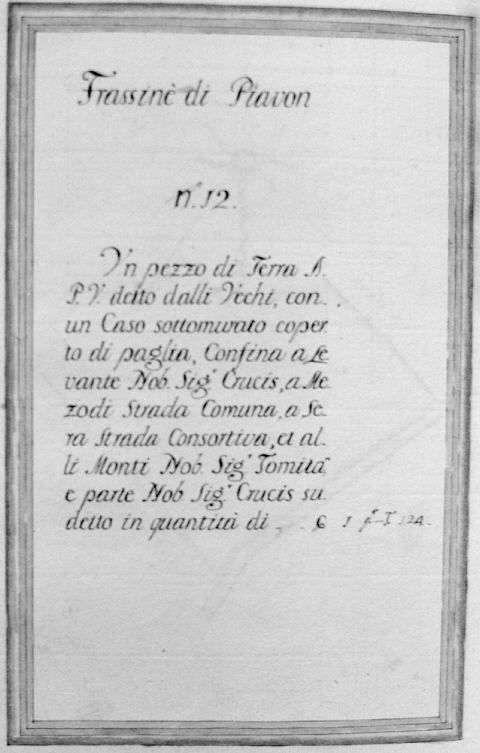 Il cason nel '900, era di proprietà del barone Rechsteiner, console di Germania a Venezia. Nel 1980 fu donato al comune di Oderzo, dichiarato monumento nazionale, sotto la protezione del Ministero dei Beni Ambientali, come tutti i casoni esistenti. Dal comune di Oderzo è stato quindi restaurato, e il tetto è stato rifatto dai "casonieri" di Caorle. Il superstite cason rimane a testimonianza di quale fosse, nei secoli scorsi, l'abitazione più comune. I catastici parrocchiali, sui quali sono disegnate tutte le proprietà della chiesa e della Luminaria nei secoli 16° e 17°, riportano il numero e la tipologia di queste abitazioni. DidascaliaDidascaliaNel catastico del 1588 detto "vecchio" disegnato da messer Bettodel, sono disegnati nove casoni. Nel catastico Cortelotto del 1608, indicato col nome del suo autore "Costantin Cortelotto, pertegador et disegnator publico di Oderzo", come si presenta lo stesso Costantino, i casoni appartenenti alla Luminaria di Piavon, sono 11; mentre il Catastico che risale al 1778 disegna, in modo molto artistico, ancora 9 casoni. Ecco com'era una di queste abitazioni nella seconda metà del 1700: è descritta con le pareti di mattoni crudi e con il tetto che, alle volte è detto "di paglia" e altre volte "decanne" . " In Valentigo di Piavon. Un pezzo di terra con sopra una casa da muro. Coperta di paglia, conforno , e pozzo in loco detto La Larga, tenuto in affitto da Antonio Pagotto. Confina a Levante Nobb. S.S fratelli Tomitan, e parte Nob. Ho. Bragadin, a mezzodì eredi Domenico Boranga, a sera Nob. Sign. Fedrizzi, e parte consorti Seraffini da Ronche, et alli monti Nobb.S.S. Fratelli Tomitan". Duecento anni prima, nella seconda metà del 1500, le case non erano neppure "da muro", ma di legno coperte di paglia. Ecco come sono descritte:" Uno corrivo con case de legname coverte de paia in regula Valentigo, in loco detto Pra de volpe dove abita dona Orsola del Menego Zuzn muner e Guantiza ". Solo due sono le case "coverte de coppi", oltre alla casa del parroco. Queste case, sono così descritte: " Uno cortivo co case de muro coverte de coppi, teza de muro couerta de paia e mioramenti de m. (messer) Bemardin Tumitan". Gli abitanti dei casoni erano agricoltori e allevatori. Quale fosse la produzione agricola dei piccoli appezzamenti di terreno che circondavano i casoni, quasi tutti piantati a "vidiga", lo si comprende dai prodotti pretesi dai proprietari del terreno per il pagamento delle decime e degli affitti. L'allevamento delle pecore costituiva una buona fonte di sussistenza: agnelli, lana e formaggio pecorino servivano per pagare le decime. Non era facile conciliare l'attività dell'agricoltore e del pastore, le due attività dell'agricoltura e della pastorizia, convivevano perché regolate al minimo dettaglio. Le pecore potevano pascolar durante i mesi invernali nelle pezze di terreno tenute a "prà", il loro numero era definito con esattezza; non era consentito far pascolare le capre, perché le capre divorano anche i germogli e danneggiano le coltivazioni. Nei tre secoli successivi, le condizioni di vita delle persone che abitavano nei casoni, non mutarono di molto, fino al '900, anche se cambiarono i padroni. La gente continuò a lavorare la terra, ad allevare polli e capponi, e a sorvegliare le pecore al pascolo. Si continuò, dunque, a vivere nei casoni fino al 1900, quando essi furono gradualmente distrutti o radicalmente ristrutturati. Negli anni dell'epopea fascista furono considerati vere e proprie vergogne testimoni di una vita di stenti e di miseria da eliminare anche nella memoria. Per comprendere quale potesse essere il tenore di vita che si svolgeva all'interno di quelle quattro, letteralmente mura del cason, ecco quanto scrisse l'ingegner Ferdinando Zangiacomi, il30 maggio 1865, quando eseguì un sopralluogo sui beni appartenenti al Beneficio Parrocchiale di S. Benedetto di Piavon, per stilare una relazione sullo stato di conservazione dei beni della chiesa. Casolare al mappale 198 al civico n. 175 di Piavon. Le condizioni generali di questo casolare sono deficienti, è costruito parte in cotto parte in crudo, coperto a Zeppa (paglia). I serramenti sono molto in degrado e le recenti riparazioni eseguite non sono tali da aver cambiata l'essenza del fabbricato , il qual, del resto, pel genere stesso della sua costituzione non si può quasi dire atto ad essere posto in buone condizioni statiche ed igieniche". Nel 1908, i casolari di proprietà della prebenda parrocchiale sono tre e corrispondono ai numeri civici 18, 175 e 21. Il casolare n.18 è in buono stato di conservazione ed è stato fatto oggetto di notevoli migliorie; invece i " due casolari ali civici n. 175 e 21, per quanto abbiano subìto qualche miglioria, non si possono dire, per i guasti provenienti da vetustà, in buono stato, e necessitano di quelle riparazioni che varranno a mitigare l'impronta fatta dal tempo alle loro deficienti strutture" . Queste deduzioni furono scritte nel 1908 dall'ingegnere civile Antonio Sordoni, su incarico ricevuto dal sub economo dei Benefici Vacanti di Oderzo, don Donato Giacomini. Sempre attingendo ai documenti dell'archivio, possiamo sapere che nel 1926 la Prebenda parrocchiale era ancora proprietaria di alcuni casoni sparsi nel territorio di Piavon, che amministrativamente era ancora Comune nel Distretto di Oderzo. Vediamo come descrive queste abitazioni l'ingegner Raffaello Bettazzi di Treviso, incaricato di "......effettuare una perizia di stima di immobili a scopo di permuta fra la Prebenda parrocchiale di Piavon e la ditta Moro Angelo fu Gaspare. "In comune di Piavon, un appezzamento costituito da un fabbricato rurale denominato "al Cason" tenuto in affitto dal colono Tondato Vittorio, vi si accede per la stradella sul confine a ponente della strada Comunale maggiore. Il fabbricato è un cosiddetto casone di m.14 per 5,50, costituito da un piano terreno con muri di mattoni crudi, comprendente la cucina, due camere e stalla; sopra con 